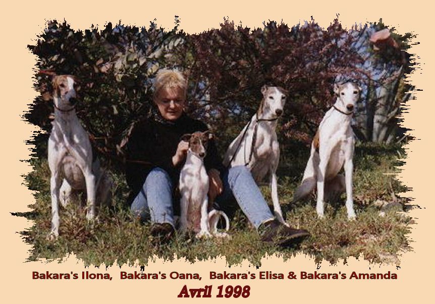 générations consécutives de Greyhounds BAKARA'S (de droite à